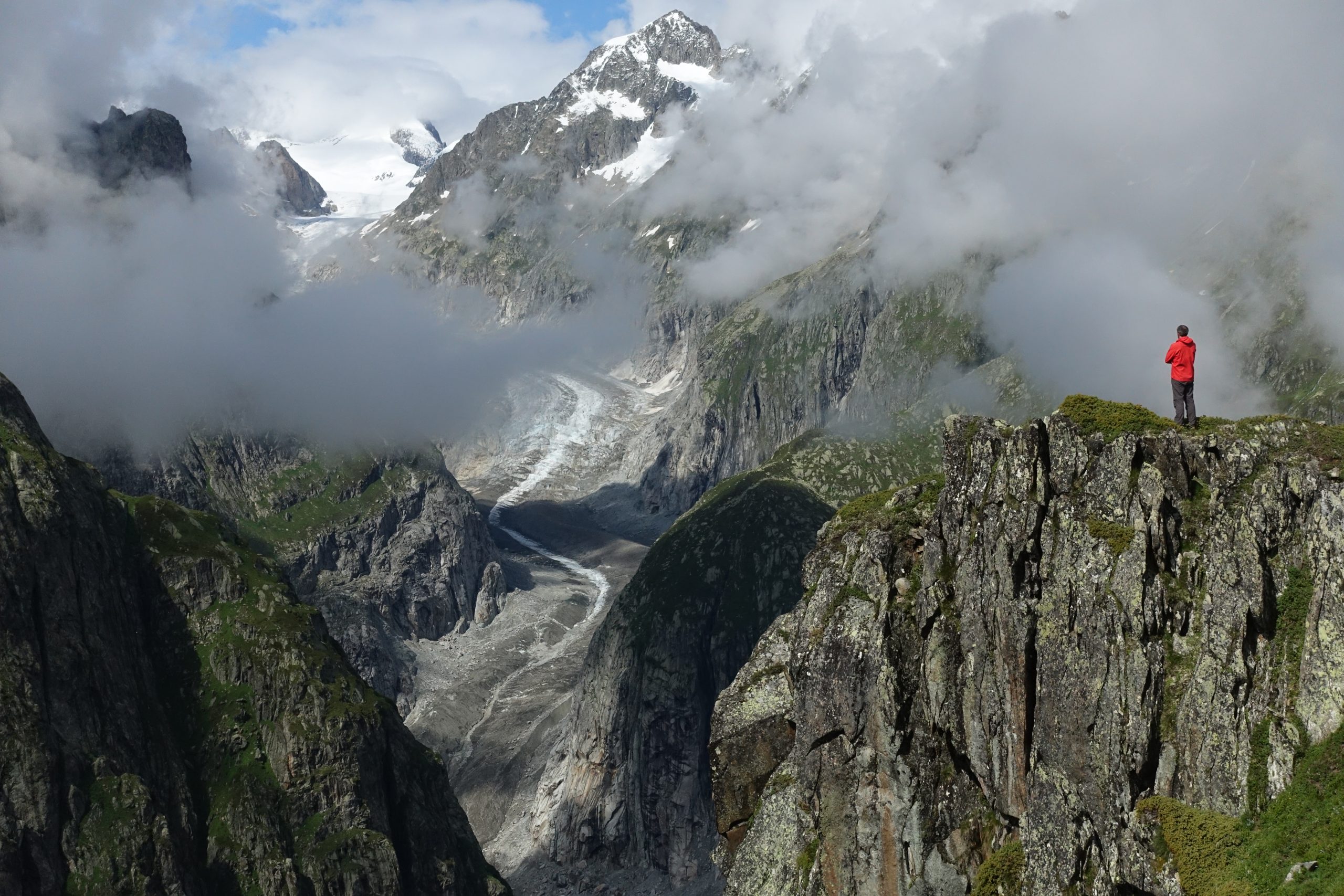 Vor 2 Jahren habe ich an einer Tour über den Aletschgletscher zur Konkordiahütte teilgenommen. Kürzlich war ich wieder für eine Woche im Aletschgebiet. Beim Blick über den Fieschergletscher (Bild oben) ist das Thema Klimakrise und Gletscherrückgang sofort präsent.