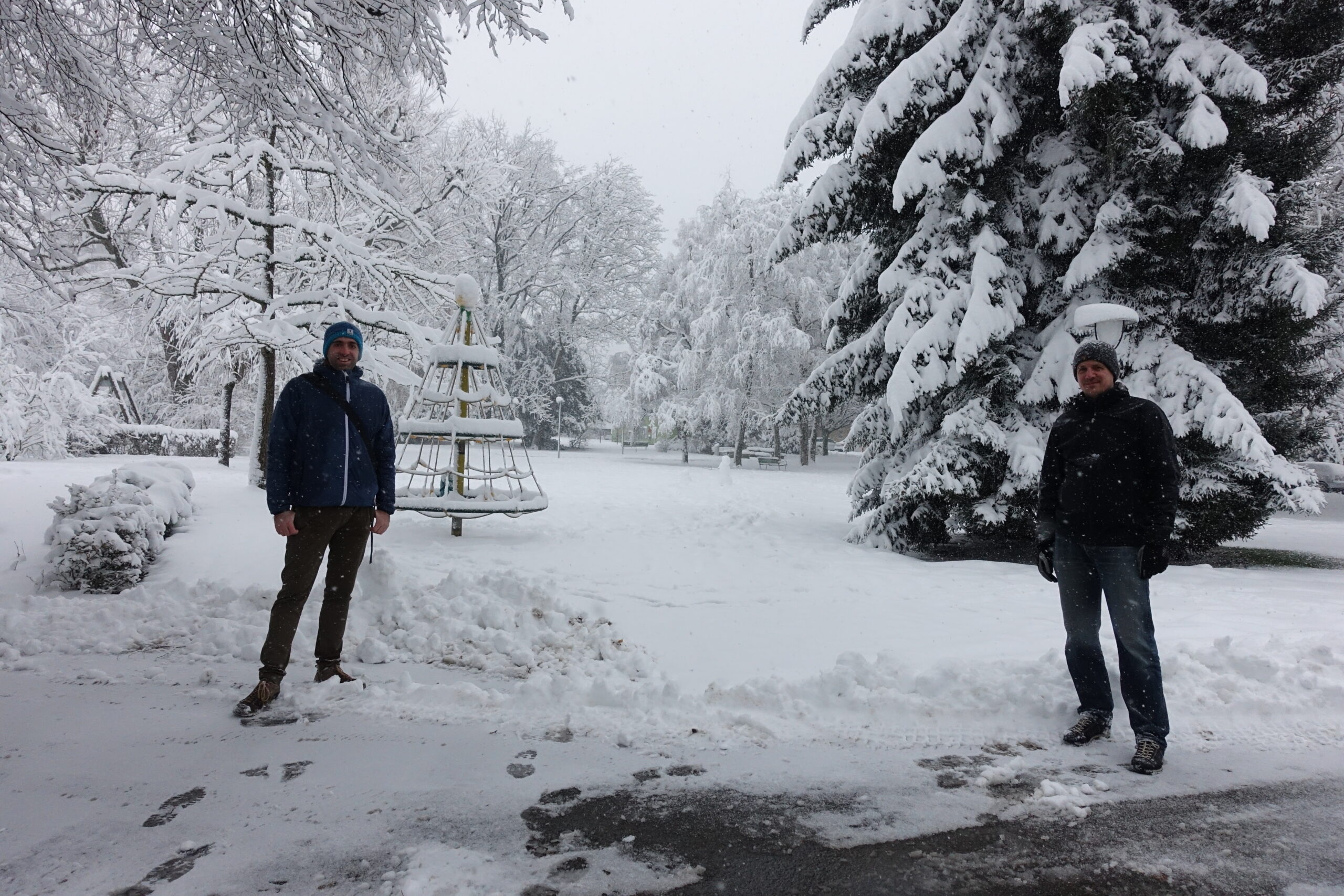 Foto: Gemeinsam mit Referent Patrick Weibel beim Rekognoszieren des Spaziergangs. Im Hintergrund ist der klimatisch wertvolle Vögeligarten zu sehen.